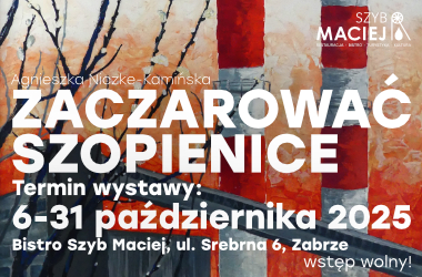 WYDARZENIA ARCHIWALNE KULTURA · MUZYKA · ROZRYWKA Restauracja Bistro Imprezy okolicznościowe Turystyka Historia Wydarzenia Archiwalne wydarzenia WARSZTATY – ŚWIĄTECZNE KARTKI I OBRAZKI | 12.12.2025 g. 17:00-20:00Czytaj więcejSPOTKANIE Z MIKOŁAJEM | 6 GRUDNIA 2025Czytaj więcejKRZYSZTOF SKIBA – STAND UP | 21.11.2025 g. 19:00Czytaj więcejKOLACJA DEGUSTACYJNA Z MUZYKĄ NA ŻYWO | 14.11.2025 r. GODZ. 19:00-22:00Czytaj więcejWARSZTATY AKWARELOWE Z MAGDĄ Śliwińska | 30.10.2025 r. g. 17:00-20:00Czytaj więcejSZYB MACIEJ WEDDING DAY | 12.10.2025 r.Czytaj więcejADAM SNOPEK SHOW | 9.10.2025 g. 19:30Czytaj więcejAGNIESZKA NICZKE-KAMIŃSKA „ZACZAROWAĆ SZOPIENICE” – wystawa | 6-31.10.2025 r.Czytaj więcejNOCNE ZWIEDZANIE Z PRZEWODNIKIEMCzytaj więcejHAŁDY MICHAŁKOWICKIE – WYSTAWA | WRZESIEŃ 2025Czytaj więcej„MALARSTWO” | Katarzyna Skalska-Opania | 1-31.08.2025 r.Czytaj więcejNOCNE ZWIEDZANIE Z PRZEWODNIKIEMCzytaj więcejLETNIA SCENA W SZYBIE MACIEJ 2025Czytaj więcejSILENT DISCO | 21.06.2025 r.Czytaj więcejKARAOKE SHOW Z MONI ART | 18.06.2025 r.Czytaj więcejMIĘDZY MROKIEM, A ŚWIATŁEM – WYSTAWA | 13.06.-20.07.2025 r.Czytaj więcejPIRACKI DZIEŃ DZIECKA | 01.06.2025 r.Czytaj więcejCHILLOUT 2025 | 06.06-29.08.2025Czytaj więcejINDUSTRIADA | 7 czerwca 2025Czytaj więcej„ŚLĄSKIE ELDORADO” wystawa | 1-31 maja 2025 r.Czytaj więcejJOANNA BIELSKA-LEGIEĆ – „MALARSTWO” | 1-30 kwietnia 2025 r.Czytaj więcejKAROL JOPERT – „Ruiny przemysłu” – wystawa | 1-30.03.2025 r.Czytaj więcejSzyb Maciej Jazzowo – koncert TUBIS TRIO | 20.03.2025 r., g. 19:00Czytaj więcejWYSTAWA ZBIOROWA PRAC MALARSKICH KLUBU „PASTEL” ZSM ZabrzeCzytaj więcejWALENTYNKI 2025 – 14 lutego 2025Czytaj więcejBABSKI COMBER 2025 – 7 & 8 marca 2025Czytaj więcej„Niepokój” – wystawa | 02.01-02.02.2025 r.Czytaj więcej„OBIEKTYWNIE ŚLĄSKIE” – wystawa pokonkursowa 15. edycji | 3-29.12.2024 r.Czytaj więcej„ANATOMIA RÓWNOWAGI” – wystawa Marty ZygmuntCzytaj więcejSzyb Maciej Jazzowo – koncert KUMOREK & TUBIS | 28.11.2024 r., g. 19:30Czytaj więcej„SYMFONIA KOPALNI” | 26.11.2024 r., godz. 18:00Czytaj więcejTydzień Kuchni Polskiej | 4-24 listopada 2024 r.Czytaj więcej„RAZEM” – wystawa fotograficzna Magdaleny Darmoń | 1.10.-02.11.2024 r.Czytaj więcejSzyb Maciej Jazzowo – koncert STECHEK | 17.10.2024 r., g. 19:00Czytaj więcejKIRIART. Rysowane nożyczkami – Tadeusz Patykowski | 3-29 września 2024 r.Czytaj więcejSzlak Zabytków Techniki w artystycznej odsłonie | 6-31 sierpnia 2024 r.Czytaj więcejMOC DĘTYCH! – Chillout z dętymi orkiestrami | 28.06.2024 r., godz. 17:00Czytaj więcejPotańcówka pod gołym niebem | 21.06.2024 r., godz. 18:00Czytaj więcej„Bryła i faktura” – wystawa | 18.06.-04.08.2024 r.Czytaj więcejNoc w muzeum – czyli nocne zwiedzanie Szybu Maciej | 19.07.2024 r., godz. 21:00Czytaj więcejCHILLOUT w Szybie MaciejCzytaj więcejLetnia Scena – SIERPIEŃ 2024Czytaj więcejINDUSTRIADA | XV EDYCJA – 1 CZERWCA 2024Czytaj więcej„Śląsk. Pejzaż postindustrialny”Czytaj więcejNoc Muzeów 2024 | 17 maja 2024 r. [BRAK MIEJSC]Czytaj więcejRegioRest Festiwal | wiosna 2024Czytaj więcej„Niebo nad Śląskiem” – wystawa | 9-30 kwietnia 2024 r.Czytaj więcej„STRÓJ ŚLĄSKI NA FOTOGRAFII” WYSTAWA | 5-31 marca 2024 r.Czytaj więcejBABSKI COMBER 2024 | 09.03.2024 r. (II TERMIN)Czytaj więcejBABSKI COMBER 2024 | 08.03.2024 r. | SOLD OUT!Czytaj więcejWALENTYNKI 2024 | 14 lutego, godz. 17:00 & 19:30Czytaj więcejAdam Snopek Show | 08.02.2024 r. g. 19:00Czytaj więcejJózef HETMAN – DZIEŃ Z ŻYCIA GÓRNIKA | Wystawa | 05-31 stycznia 2024 r.Czytaj więcejWARSZTATY WIANKOWE DLA DOROSŁYCH | 09.12.2023 r. g. 10:00Czytaj więcejWystawa „Obiektywnie Śląskie” | 21.11-30.12.2023 r.Czytaj więcejJózef HETMAN – Mōj ślōnski heimat | Wystawa | 7-30 listopada 2023 r.Czytaj więcejKONCERT – KOMEDA REFLECTIONS | Maciej tubis SOLO | 16.11.2023 r.Czytaj więcejJózef JONIK – (Nie)zapomniany przemysł Zabrza | Wystawa | 3-31 października 2023 r. | Wystawa przedłużona do 19 listopada 2023!Czytaj więcejKONCERT – Silesian Jazz Daughters & Adam Jarzmik | 26.10.2023, godz. 19:00Czytaj więcejSPOTKANIE AUTORSKIE ZE ZBIGNIEWEM STRYJEM | 19.09.2023 r., godz. 18:00Czytaj więcejLetnia Scena – sierpień 2023Czytaj więcejNOCNE ZWIEDZANIE Z PRZEWODNIKIEM | 25.08.2023 r., g. 21:00 | BRAK MIEJSCCzytaj więcejNOCNE ZWIEDZANIE Z PRZEWODNIKIEMCzytaj więcejSZYB MACIEJ CHILLOUT 2023Czytaj więcejINDUSTRIADA 2023Czytaj więcejWYSTAWA „CZARNE DIAMENTY”Czytaj więcej14.02.2023 r. | KOLACJA WALENTYNKOWA 2023 r.Czytaj więcej15.02.2023 r. | BOLEWSKI & TUBIS. OBYWATEL JAZZ – KONCERTCzytaj więcej10.03.2023 r. | BABSKI COMBER 2023 r. – FLUO NIGHTCzytaj więcej
